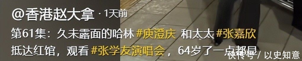1日,有路人于香港红磡体育馆外偶遇庾澄庆携现任妻子张嘉欣现身张学友演唱会现场,两人并肩而行,举止自然亲昵。